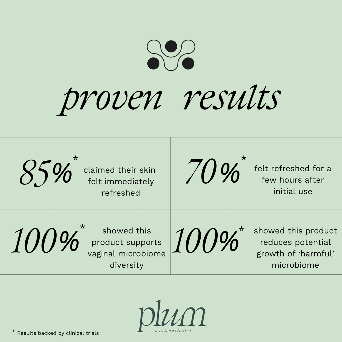 Each study shows Plum's cleansing + hydrating Mist to be safe, not harmful to the vaginal area and that it maintains the microbiome.