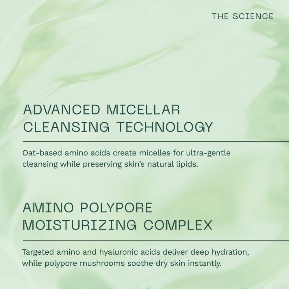 - Uses cleansing amino acids from oat for gentle, non-stripping cleansing.